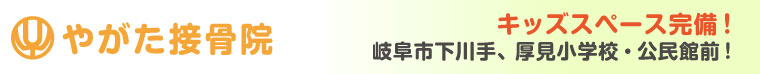 岐阜市下川手、厚見小学校、公民館前 やがた接骨院です! 高間堂で10年以上修行し痛みと向き合ってきました、 交通事故治療や、スポーツ外傷など、何でもお任せください。 急なケガ 身体の痛み・悩み 等 ございましたら お気軽にご相談下さい ☆キッズスペースをご用意いたしております☆ 小さなお子様をお連れの方も、お気軽にお越し下さい。 | |